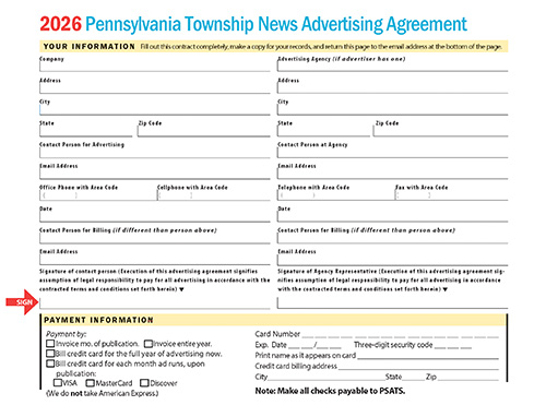 Email it to Brenda Wilt at bwilt@psats.org (preferred) or fax to (717) 763-9732. Include the township AND county, the text of the ad, and a billing address. Questions? Call Brenda at (717) 763-0930, ext. 123.