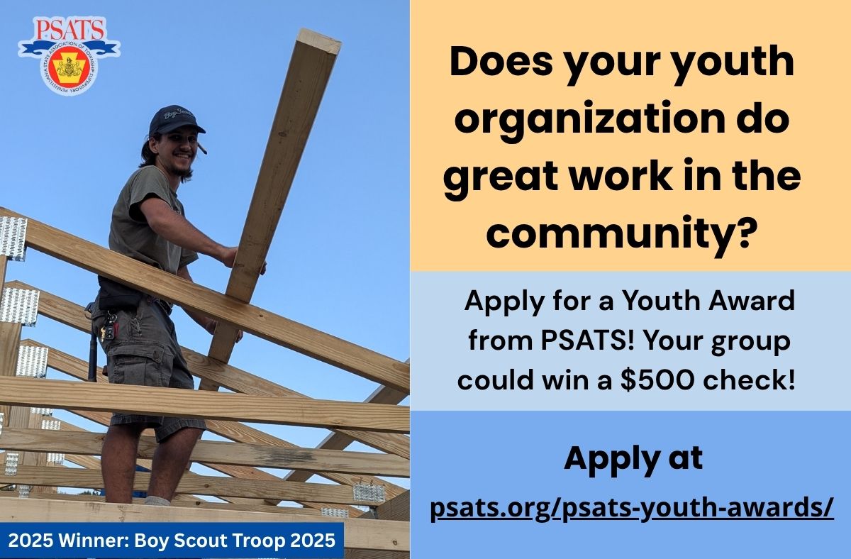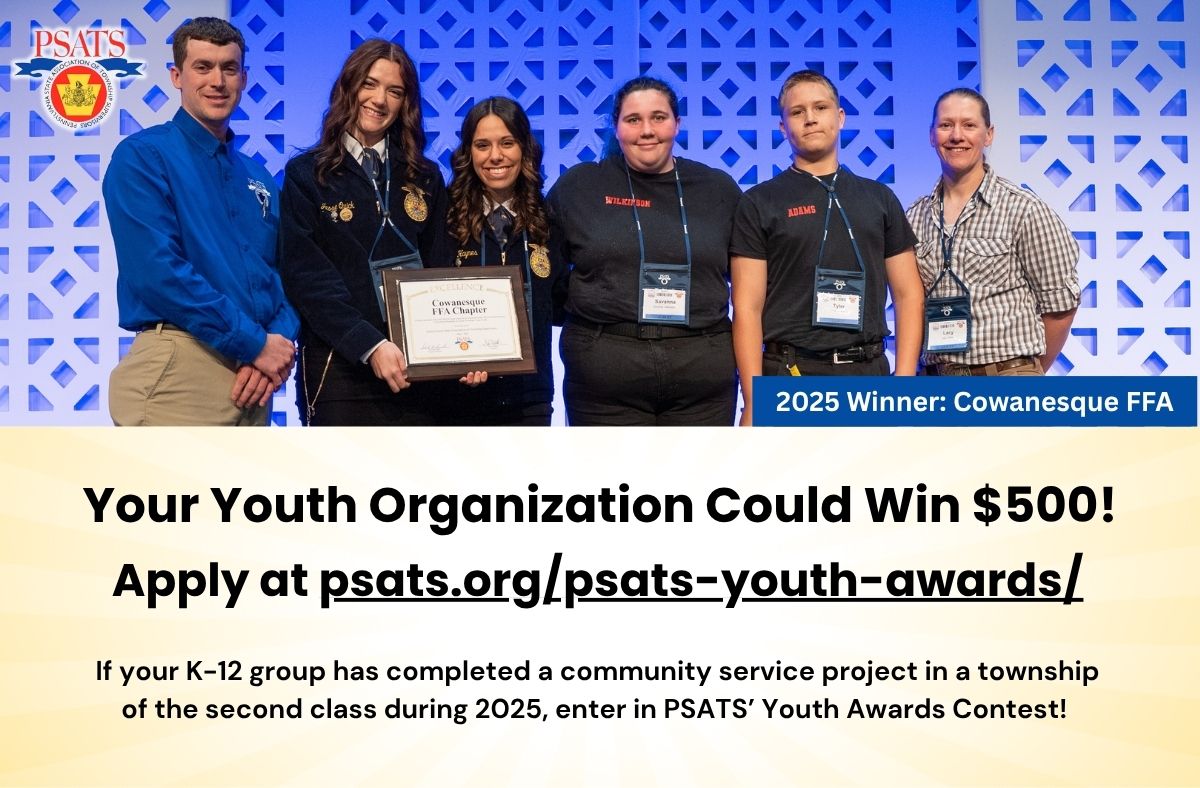 Purpose: To recognize youth groups that make valuable and lasting contributions to improve life in Pennsylvania’s townships of the second class. The awards program encourages greater youth involvement in township government.